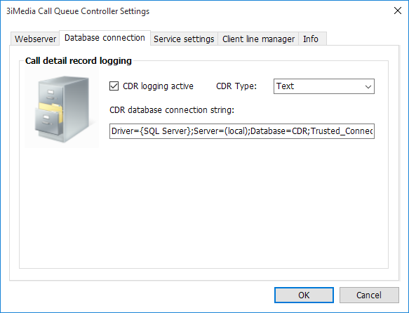 These settings control the database or text file logging. On default, Queue Controller logs its data into text files in file system. To activate logging into a database a correct connection string has to be set and CDR type has to be set to "SQL" instead of "Text".